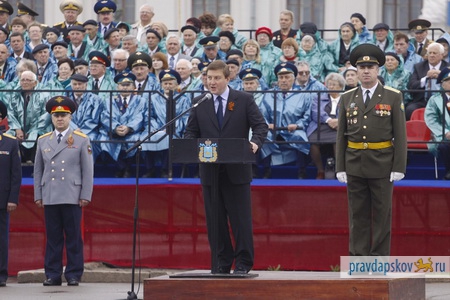 В Пскове на площади Ленина начались работы по монтажу зрительских трибун, с которых 9 мая ветераны, псковичи и гости города смогут наблюдать за ходом Парада Победы.