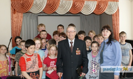 А у Петра Яковлевича Заруцкого, кавалера ордена Красной Звезды, состоялась встреча с воспитанниками «Социально-реабилитационного центра г. Пскова». Подростки с большим вниманием слушали рассказ ветерана о прошедшей войне, о пережитом, о том, какой ценой досталась победа. Петр Яковлевич особо подчеркнул, насколько важны для представителя любого поколения такие понятия как мужество и самопожертвование в благородном деле защиты Родины.