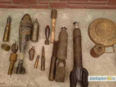 Если вы нашли даже старый и ржавый металлический предмет, назначение которого не можете определить, то не трогайте его, подумайте о своей жизни, более ценной, чем удовлетворенное любопытство. Сразу же сообщите о находке по телефонам: «01», «02», «112» или в военный комиссариат Псковской области. Используя подручные средства, обозначьте место обнаружения снаряда и удалитесь от него на расстояние не менее 50 метров.