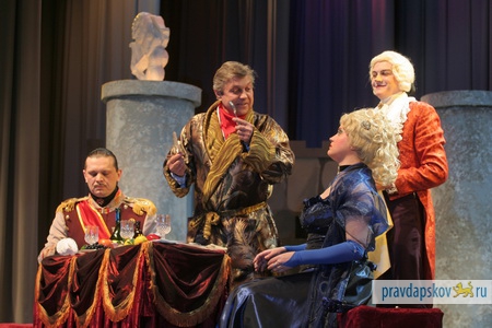 Как «Псковской правде» сообщили в Псковском театре драмы им.Пушкина, действие комедии русского драматурга 19-го века Федора Кони «Муж всех жен» происходит на границе Франции и Италии и возвращает нас в эпоху карбонариев (бунтовщиков). Виртуозно закрученная интрига основана на любви. В спектакле