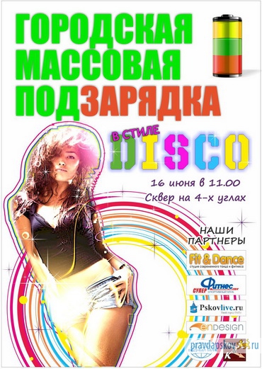 16 июня в 11:00 в сквере на Четырёх углах состоится городская массовая танцевальная «ПодЗарядка» в стиле D.I.S.C.O. от общественного молодёжного движения «Здоровое поколение».