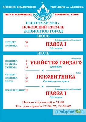 26 июня Псковский академический театр драмы им. А.С. Пушкина представит в Новгородском кремле мистерию «Павел I». Выступление пройдёт в рамках фестиваля «Театральное вече».