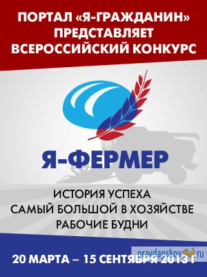 Интернет-портал гражданской активности «Я – гражданин» объявляет об открытии Всероссийского конкурса достижений работников сельского хозяйства и сельскохозяйственных организаций «Я – фермер».
