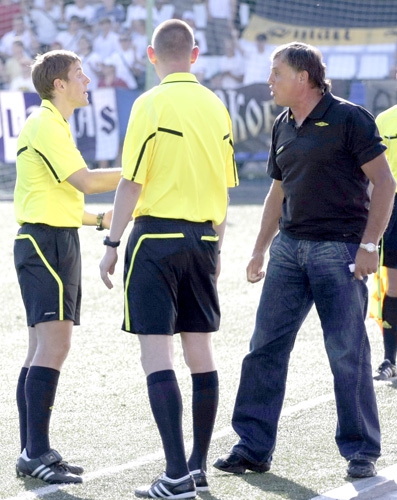 Подпись к фото: Владимир Косогов высказывает судье Денису Марееву (слева) все, что думает о качестве его работы.