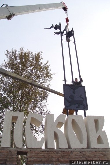 – Мы работали строго по чертежам, правда, в процессе работы усилили конструкцию, чтобы 12-метровые флагштоки выдержали резкие порывы ветра, – сообщил «Псковской правде» Евгений Вагин. – Знак устанавливали несколько дней. Последние «штрихи» – монтаж железных развевающихся флагов и покраска фона герба. Фон – не ярко-голубой, как в оригинале, а более сдержанный, суровый. Все вместе – очень лаконично, строго, по-псковски.