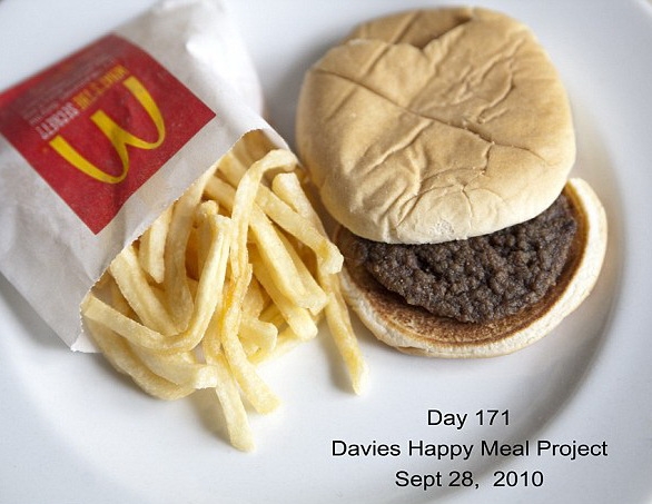 Еда из McDonald's может не разлагаться в течение полугода, доказала американская фотохудожница с помощью детского обеда Happy Meal, пишет NEWSru.com. Салли Дэвис из Нью-Йорка купила порцию в апреле и оставила у себя на кухне, чтобы проследить, как она будет видоизменяться со временем. С едой, однако, ничего не произошло: она лишь затвердела, как камень, сообщила Дэвис британской газете The Daily Mail.