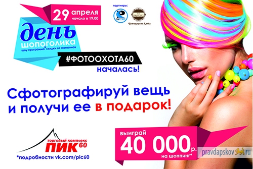 Только 29 апреля целый день в ТК «ПИК 60» скидки до 50% во всех магазинах комплекса в рамках «Дня Шопоголика»!Список партнеров акции и номинал предоставляемых призов вы можете найти в обсуждениях нашей группы!