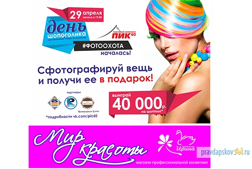 До 28 апреля участвуйте в фотоохоте на вещи, которые Вам понравились и получите возможность выиграть до 40 000 рублей* на неповторимый шопинг в любимых магазинах ТК «Пик 60»!Правила участия очень простые: