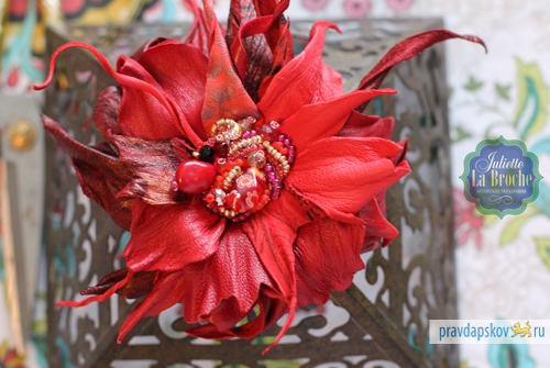 - Года три назад увидела в интернете брошь из натуральной кожи, впечатлилась увиденным и решила попробовать сделать сама, - рассказывает Юлия. - Первые работы были ужасны, но с опытом мастерство росло.
