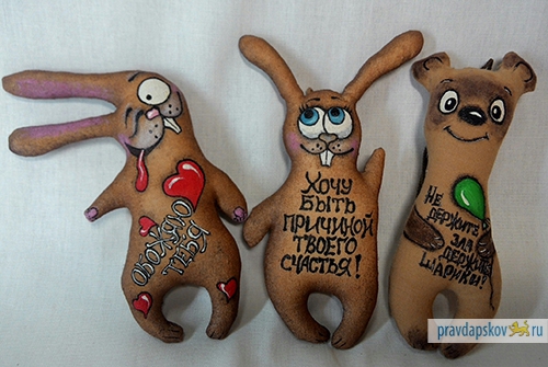 Совы, щенки, грибочки, зайчата – забавные игрушки Марины Беленковой с позитивными надписями с легкостью поднимут настроение.