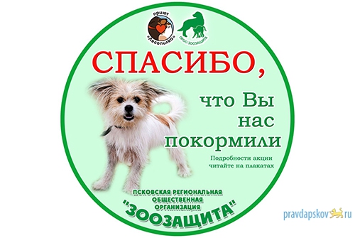 Псковская региональная общественная организация «Зоозащита» благодарит всех участников акции за возможность сытно жить, подаренную питомцам «Лесопилки».