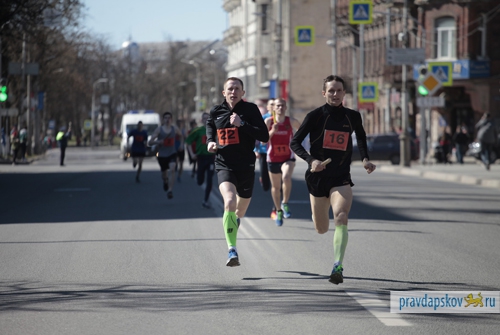В течение полутора часов по улицам Пскова бегали школьники, студенты, силовики, депутаты и чиновники, работники банков, архивов, ресторанов. Всё это в память о Победе в Великой Отечественной войне. В этом году впервые встать на маршрут смогли семейные команды.