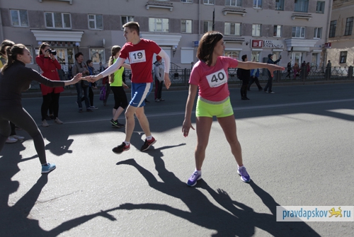 В течение полутора часов по улицам Пскова бегали школьники, студенты, силовики, депутаты и чиновники, работники банков, архивов, ресторанов. Всё это в память о Победе в Великой Отечественной войне. В этом году впервые встать на маршрут смогли семейные команды.