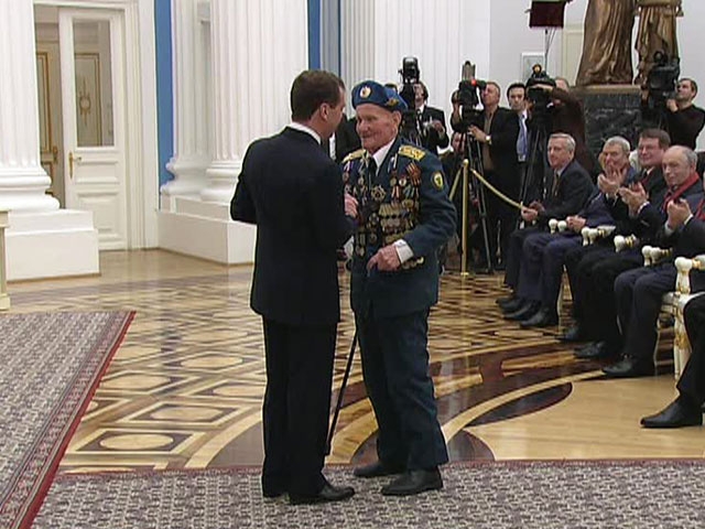 Президент также вручил ордена Мужества, в том числе, Феликсу Артёменко - участнику ликвидации Чернобыльской аварии, домохозяйке Татьяне Дёминой, работнику Саяно-Шушенской ГЭС Владимиру Кочетову.