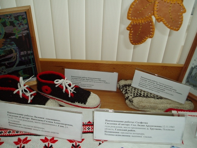 «Я думаю, что подобная выставка-конкурс проходит в Пскове впервые. Свои работы представили члены клуба рукоделия при Университете Третьего возраста, жители 18 районов области, объединения пенсионеров. Всего – более 150 человек. Экспозиция состоит более чем из 350 работ, выполненных с использованием 40 видов рукоделия», - рассказала председатель регионального отделения СПР Светлана Мельничук.