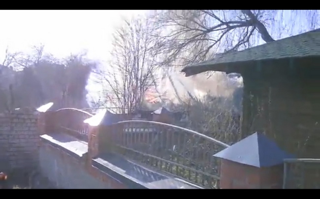 На место происшествия только что приехали две пожарных машины. Место происшествия оцеплено милицией, собралось около сотни зевак.