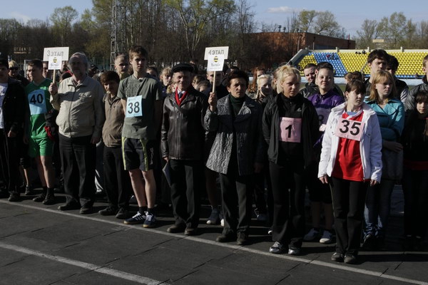 Перед началом забега участники соревнования прошли парадом по стадиону «Машиностроитель». По предварительным данным в эстафете принимают участие около 1500 человек, сообщает корреспондент «Псковской правды».