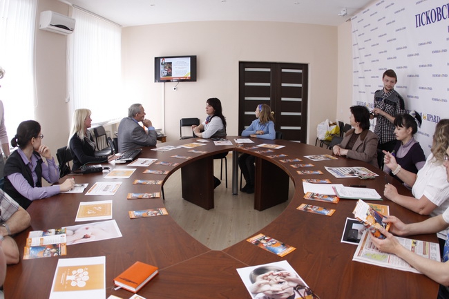 На встречу в пресс-центр «Псковской правды» пришли не только сотрудники и волонтеры «Детского фонда», но и представители социальных учреждений, которые получили помощь, собранную в ходе реализации проекта «Помогать – просто!». Директор Бобровского дома-интерната рассказал об истории сотрудничества с Детским фондом, а социальный педагог Порховской коррекционной школы-интерната поделилась идеями о том, какая помощь необходима детям для будущей самостоятельной жизни. Постепенно встреча переросла из презентации в формат «круглого стола». Журналисты и волонтеры вступили в оживленную дискуссию, которая закончилась настоящим «мозговым штурмом» - новые проекты помощи детям рождались на глазах.