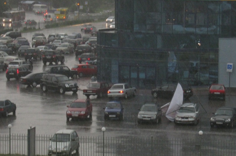 Первые автожертвы сильного ветра уже замечены на стоянке возле ТК "ПИК 60". Стихия сорвала большой шатер и понесла его на припаркованные машины. Некоторым из них теперь предстоит кузовной ремонт.