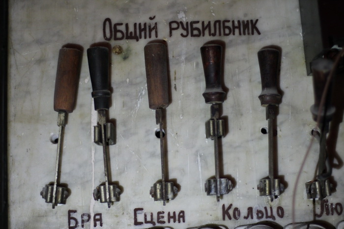 Некоторые наши коллеги взобрались на единственный балкон в зале. Балкон никак не используется, на нем собран разный хлам, от белых тапочек до щитов различных партий. На самом балконе журналисты обнаружили древний электрощиток, который тут же окрестили "центром управлением депутатами". Напомним, что в актовом зале администрации ежемесячно проходят сессии Псковского областного Собрания.