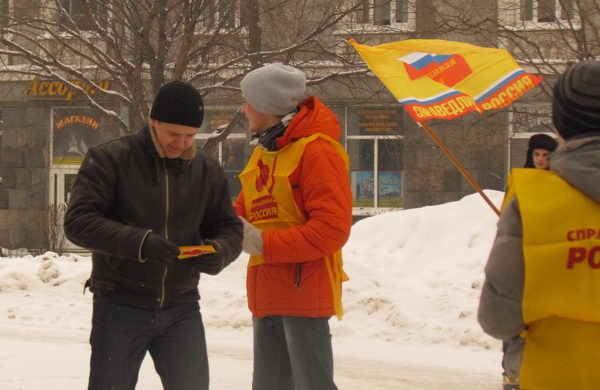 Молодые активисты-справедливороссы вручали жителям Пскова открытки с наилучшими пожеланиями мира, добра, любви и справедливости.