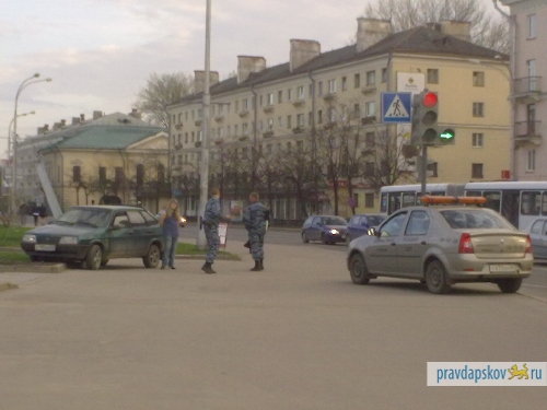 Около 19 часов 28 апреля в Пскове на площади Ленина произошло ДТП, в котором травмы получила девушка. В момент аварии она находилась на тротуаре.