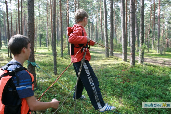 2 смены по четыре ночевки каждая, под завязку наполненных увлекательными заданиями – такова программа второго туристического учебного сбора «Лесная школа». Целых восемь дней в местечке близ Вашиной горы, на берегу реки Обдех 40 с лишним детей под руководством и контролем нескольких отчаянных взрослых будут познавать азы пешеходного туризма. Старший инструктор – Татьяна Верховых из Псковского клуба туристов – подготовила программу таким образом, чтобы скучать не приходилось и новичкам, и «старичкам» лесной жизни. Ребятишек ждут спортивное ориентирование, веревочный городок, основы медпомощи, поход первой категории сложности и, конечно же, приготовление пищи на костре. Каждый вечер – гости из Пскова с развлекательной программой, например, стрельбами из различных видов оружия (лук, духовая трубка, пневматика).