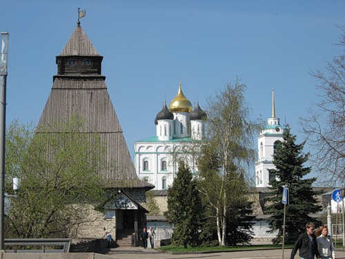 Пожар тушит только один пожарный расчет, остальным машинам к месту пожара не подобраться. Очевидно, что Власьевская башня Псковского Кремля осталась без крыши. Есть ли пострадавшие в результате пожара пока неизвестно.