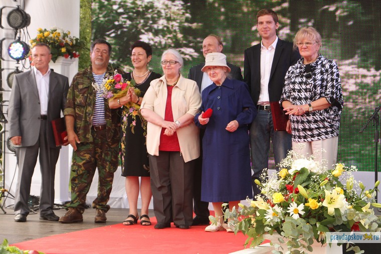 Затем участники встречи переместились на поляну близ села Михайловское, чтобы принять участие в главном событии дня - торжественной церемонии вручения Всероссийской премии «Хранители наследия».