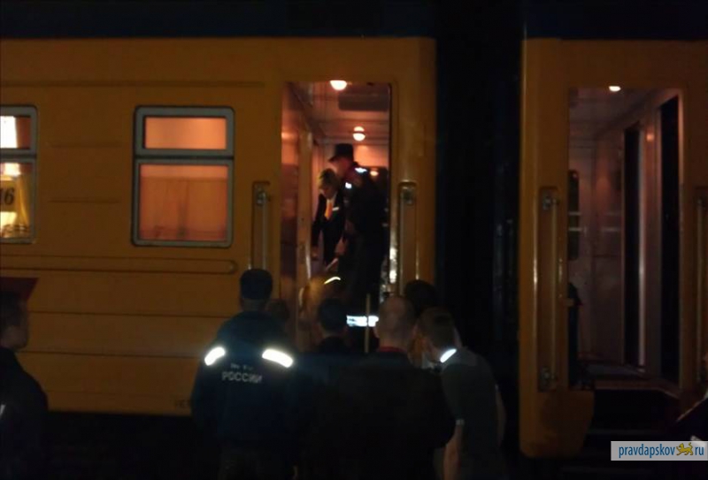Линейным отделом на станции Псков принято решение пассажиров поезда не эвакуировать. Поезд был досмотрен кинологами УМВД России по г. Пскову и ПСО г. Пскова. Обследование было завершено в 1.21 мск, взрывоопасных предметов обнаружено не было. В 01.27 поезд продолжил следование с отставанием от расписания на 55 минут.