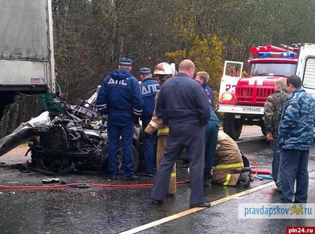 В среду 17 октября на 58 км шоссе Псков – Рига произошло ДТП: автомобиль «Фольксваген Пассат» на полном ходу врезался в стоящую на обочине фуру.