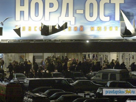 Группа боевиков во главе с Мовсаром Бараевым захватила театральный центр 23 октября 2002 года и удерживала заложников три дня. Террористы требовали вывести федеральные войска из Чечни.