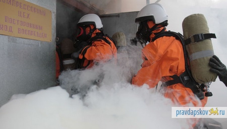 25 октября на территории ООО "Псковский мясокомбинат" прошли специально-тактические учения на тему ведения спасательных работ по ликвидации ЧС, связанных с терактами на химически опасных объектах.