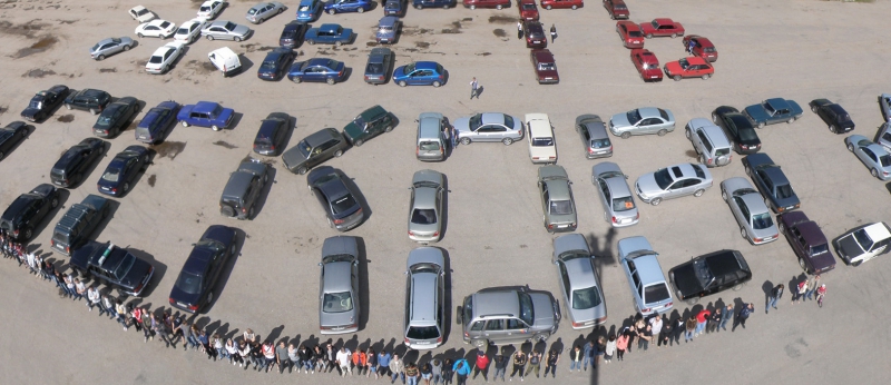 Задача стояла нелегкая, поэтому организаторы начали распределять места в надписях задолго до дня проведения акции. Но как это часто бывает – в назначенный день приехали не все. С 9 до 11 часов участники составляли буквы, и на площади нарисовалось – «Жесть по-пско…». Нехватку машин устраняли путем телефонных переговоров с друзьями. Легких на подъем людей оказалось достаточно, чтобы реализовать первоначальный замысел. В результате на площади из автомобилей сначала была составлена надпись «Жесть по-псковски», а затем и «Дорог нет! Псков». Надписи были зафиксированы на фото со специально нанятого для этой цели подъемника. Всего в машинописи приняли участие 102 автомобиля.