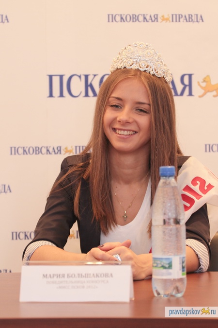 - В моей жизни с появлением короны на голове все кардинально не поменялось, - отметила 19 ноября в ходе пресс-конференции в редакции газеты «Псковская правда» Мисс Псков 2012 Мария Большакова. – Так как у меня на днях был день рождения, я каждый день получаю поздравления, слышу теплые слова.