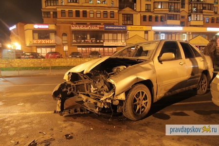 В понедельник 19 ноября около 22ч на пересечении улицы Юбилейной и Рижского проспекта в Пскове произошло ДТП с участием 5 автомобилей.