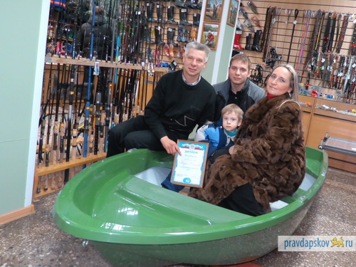 На церемонии вручения приза лучшему спортсмену года присутствовали представители псковских СМИ, друзья, коллеги по увлечению и семья победителя конкурса в полном составе. Все с удовольствием поздравили Андрея с заслуженным признанием и высоко оценили приз. В такой лодке, как «Пионер», теперь свободно поместятся все четверо Алексеевых - Андрей с супругой Еленой и двое сыновей – Павел и Артем, подрастающие рыболовы.
