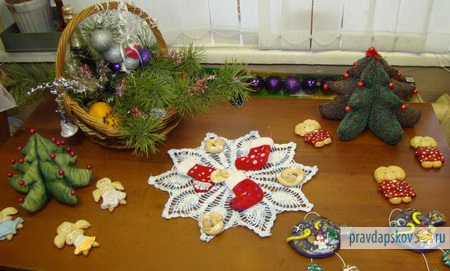 Желающие приобрести новогодние и рождественские сувениры могут обратиться по адресу: ул. Школьная, д.26, кабинет 41. Здесь оформлена выставка-распродажа творческих работ мастера Ирины Соколовой, изготовленных в технике «пластика соленого теста», мастеров Светланы Руцкой и Ларисы Танцеревой – в технике лоскутного шитья.