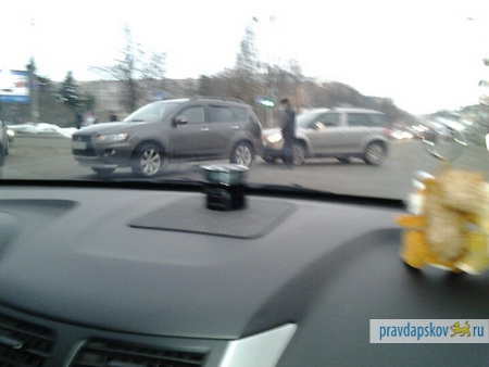 На «четырех углах» в Пскове произошло ДТП: столкнулись две иномарки.