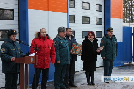 Только что завершилась торжественная церемония открытия нового пожарного поста в селе Усть-Долыссы Невельского района (Псковская область).
