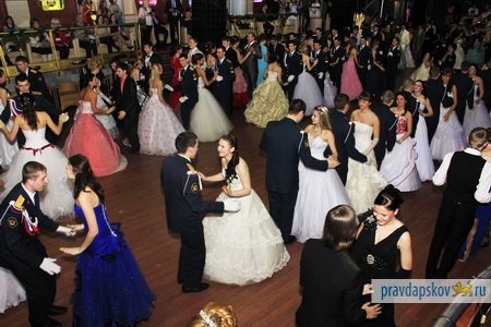 Кавалеры были в костюмах, а дамы – в нарядных бальных платьях, сообщили «Псковской правде» в пресс-службе ПсковГУ.