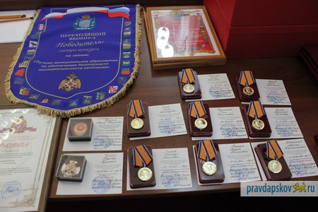 Личному составу ГУ МЧС России по Псковской области, специалистам Государственного казённого учреждения Псковской области «Управление обеспечения деятельности в чрезвычайных ситуациях», спасателям и пожарным, а также представителям взаимодействующих организаций были вручены почётные грамоты и ценные подарки администрации Псковской области, ведомственные награды и очередные специальные звания.