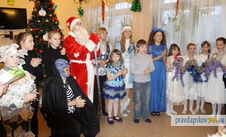В пятницу 28 декабря в Псковском детском доме состоялась новогодняя елка, организованная самими воспитанниками и администрацией учреждения. Ребята приготовили большое количество творческих номеров: песни, танцы и даже небольшие сценки.