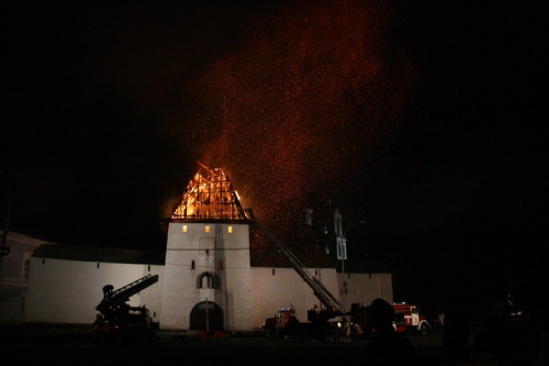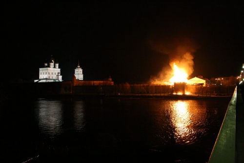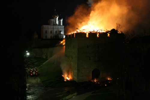 В ночь с 27 на 28 апреля сгорели две башни Псковского кремля - Власьевская и Рыбницкая