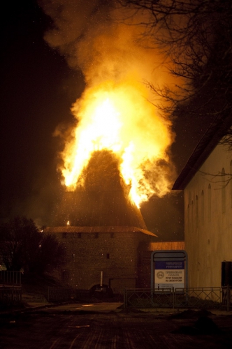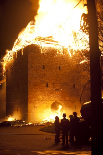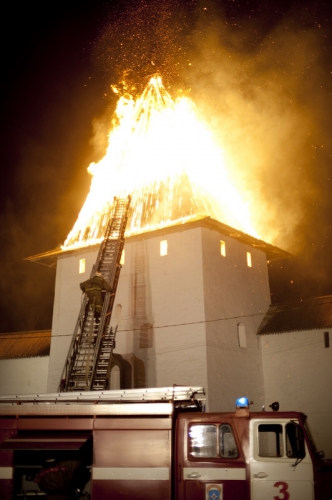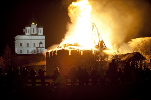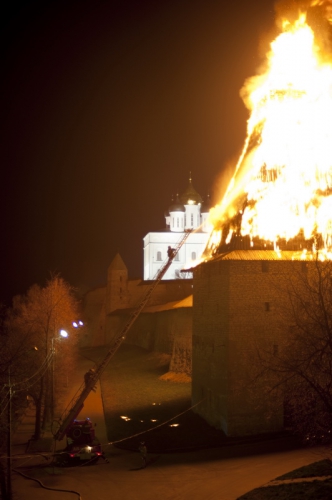 В ночь с 27 на 28 апреля сгорели две башни архитектурного ансамбля Псковского Кремля - Власьевская и Рыбницкая. Памятники архитектуры федерального значения не удалось спасти.