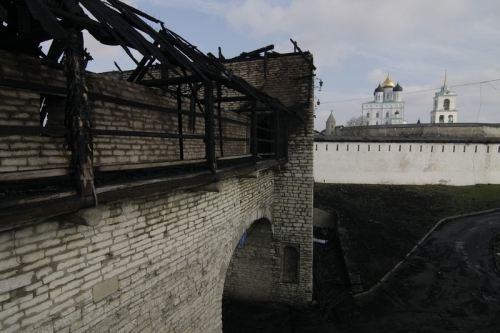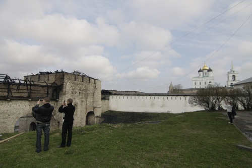 В результате пожара у Рыбницкой башни сгорела кровля, а Власьевская башня, в которой располагался ресторан «Белая Русь», выгорела полностью. По состоянию на 9 часов утра 28 апреля ликвидация пожара в Псковском Кремле полностью не была закончена, осуществлялась проливка.
