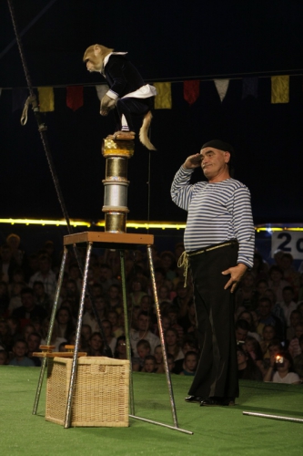 Королевские пудели - главные любимцы самых маленьких зрителей. Озорные собачки проделывают трюки, которые не всем людям под силу, а танцуют так, что ноги сами в пляс просятся. Кроме того, в семье белокурых артистов пополнение: теперь вместе с ними выступает черный пудель- джигит по всем понятиям.