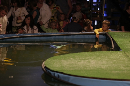 Цирк в Пскове бывает каждый год, а вот цирк на воде к нам приехал впервые. Вместо привычной арены артисты выступали на смежной с бассейном сцене, чем вызвали зависть всех зрителей: погода в день премьеры была на редкость теплая. Фоторепортаж с места событий.