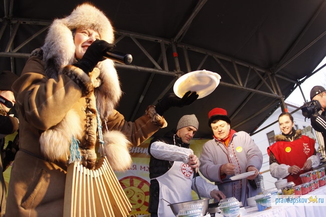 На Всероссийской Масленице в Пскове музыкант, основатель групп «Nautilus Pompilius» и «Ю-Питер» Вячеслав Бутусов испёк первые три блина. На акционе «Блинные рекорды», доходы от которого идут на строительства храма Веры, Надежды, Любви и матери и Софии, блины от Бутусова ушли в общей сложности за 11,5 тысяч рублей. Последний, третий блин купил известный российский режиссер Дмитрий Месхиев за 8 тысяч рублей.