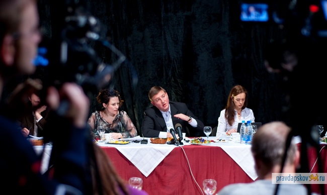 В четверг, 24 марта, Губернатор Псковской области Андрей Турчак провел традиционную встречу с журналистами региональных средств массовой информации в формате «Без галстуков». Общение проходило на малой сцене Псковского академического театра драмы им. А. С. Пушкина.